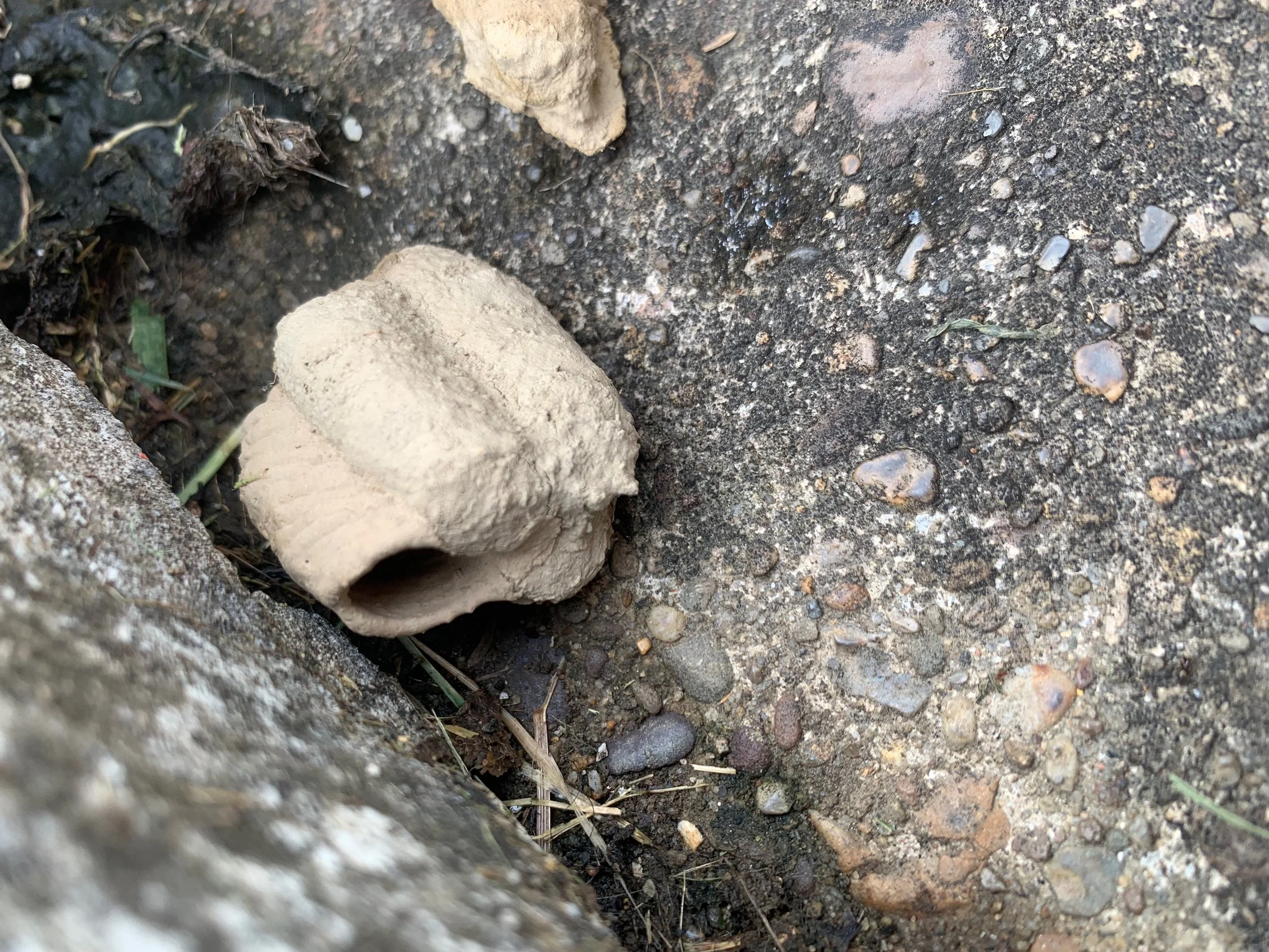 The mud nest of a Mud Dauber Wasp found on the farm. One of the cells was still wet meaning we had recently interrupted its construction.